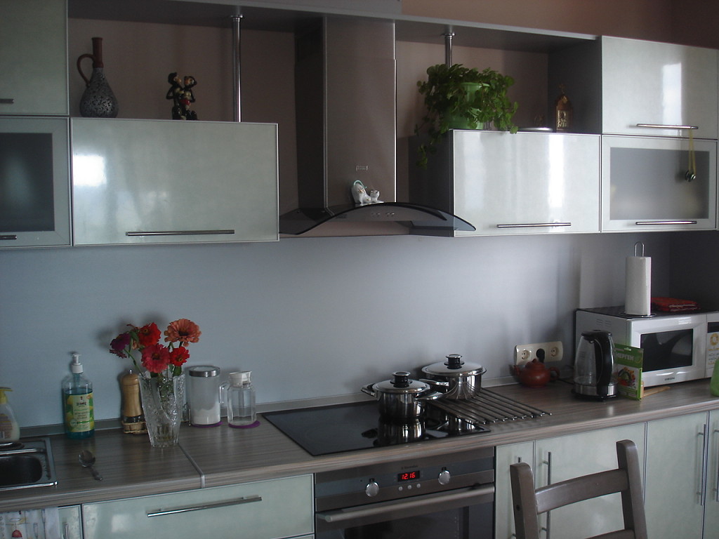 Ao escolher uma técnica, é necessário levar em consideração o esquema de cores da cozinha e aderir a um tom. O acabamento cinza da cozinha parece um bom cinza metálico escuro. Os dispositivos técnicos devem ter o mesmo estilo e cor, em harmonia com os móveis e a decoração da parede.