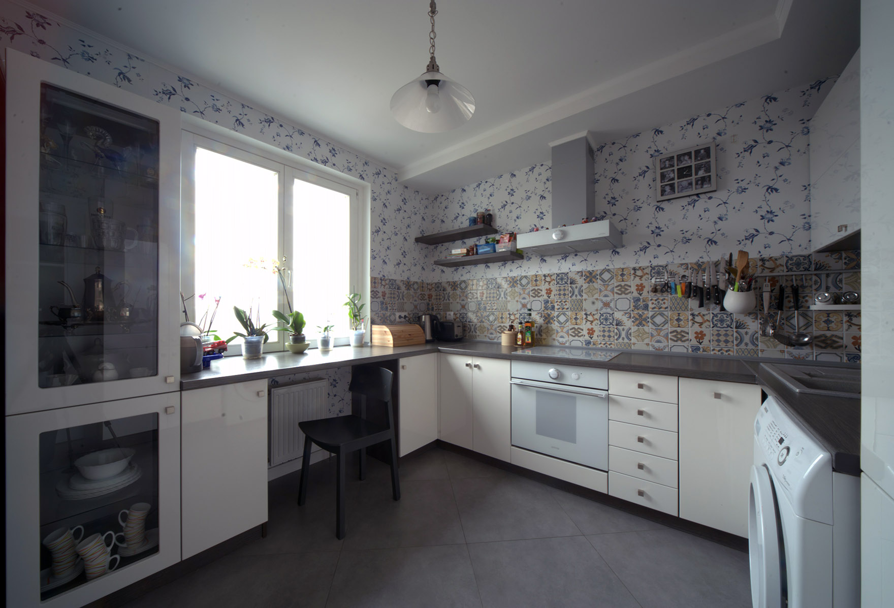 A principal característica do estilo "país francês" é a simplicidade, sem pompa e pretensão. Ele é escolhido por pessoas cansadas da agitação da cidade e do luxo ostensivo. A cor cinza pastel se encaixa perfeitamente nas suaves cores rurais e materiais naturais da Provence. Assemelha-se a uma névoa matinal sobre o mar, enchendo a casa com uma brisa leve e frescor. Em combinação com uma leve árvore de tons diferentes, uma cozinha cinza evocará associações com umas serenas férias de verão à beira-mar.