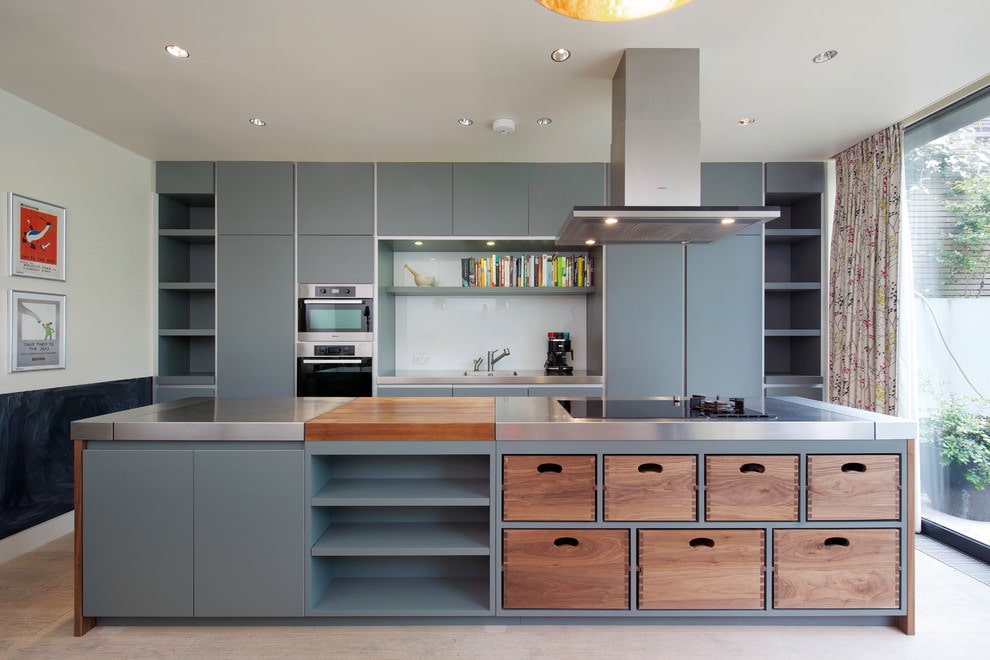 Os fãs de experimentos na cozinha cinza podem se afastar de todos os cânones e violar quaisquer regras. A imaginação é a principal fonte de idéias inesgotáveis em uma cor cinza tão diversa.