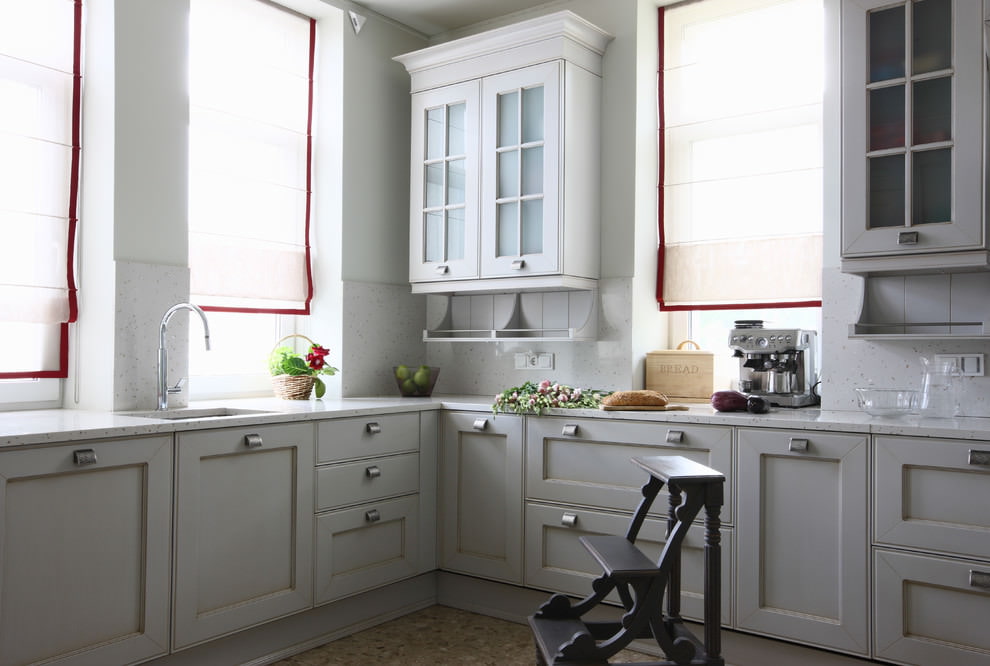 Uma combinação popular de fachadas - fundo cinza e parte superior branca - é encontrada em quase todos os estilos