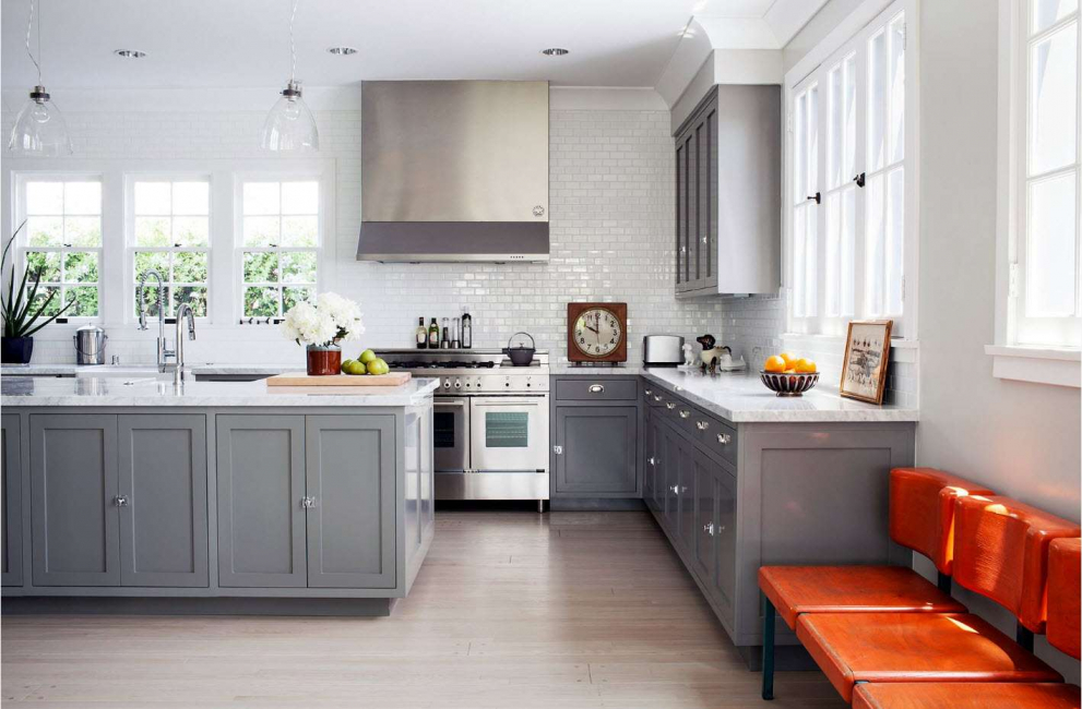 Combinações de cores ousadas tornarão a cozinha cinza incrivelmente elegante. E aqui é importante não exagerar.