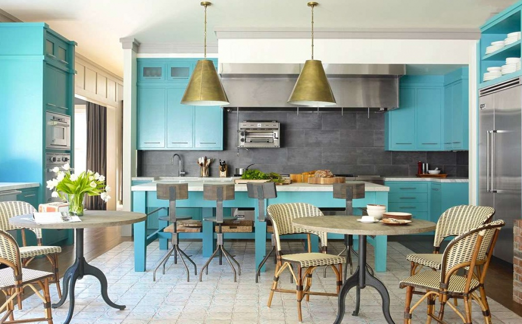 - Cinza com azul, azul. Essa combinação de cores no interior acalma, restringe os impulsos negativos. Pessoas de temperamento quente, cujas paixões na cozinha costumam se excitar, podem esfriar suas emoções com essa decisão. Uma cozinha cinza com detalhes em azul e azul nunca será chata.