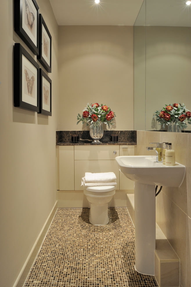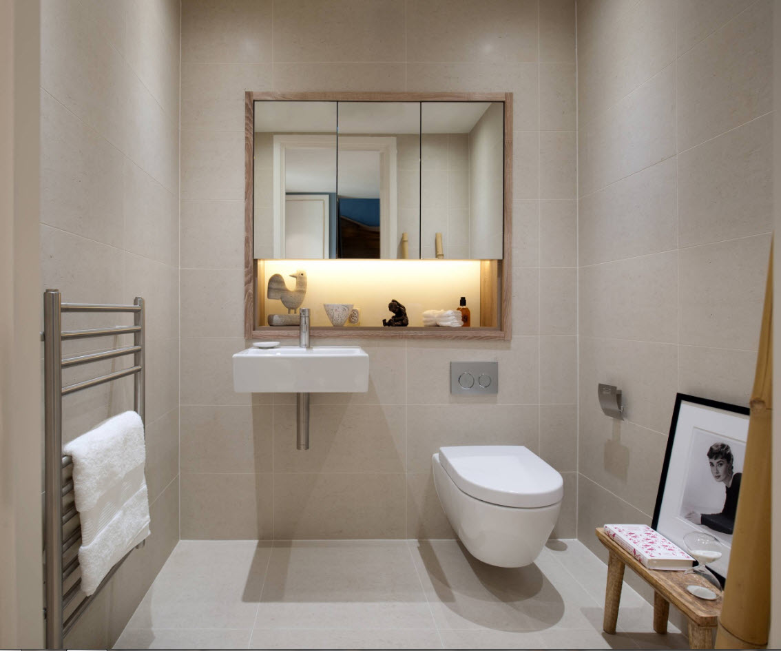 Tons claros devem prevalecer no interior de uma pequena sala de banheiro