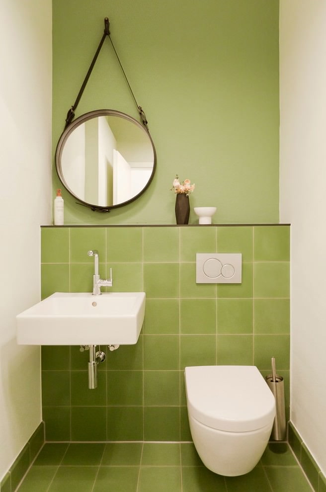 E você pode usar uma combinação de azulejos com pintura, papel de parede ou painéis