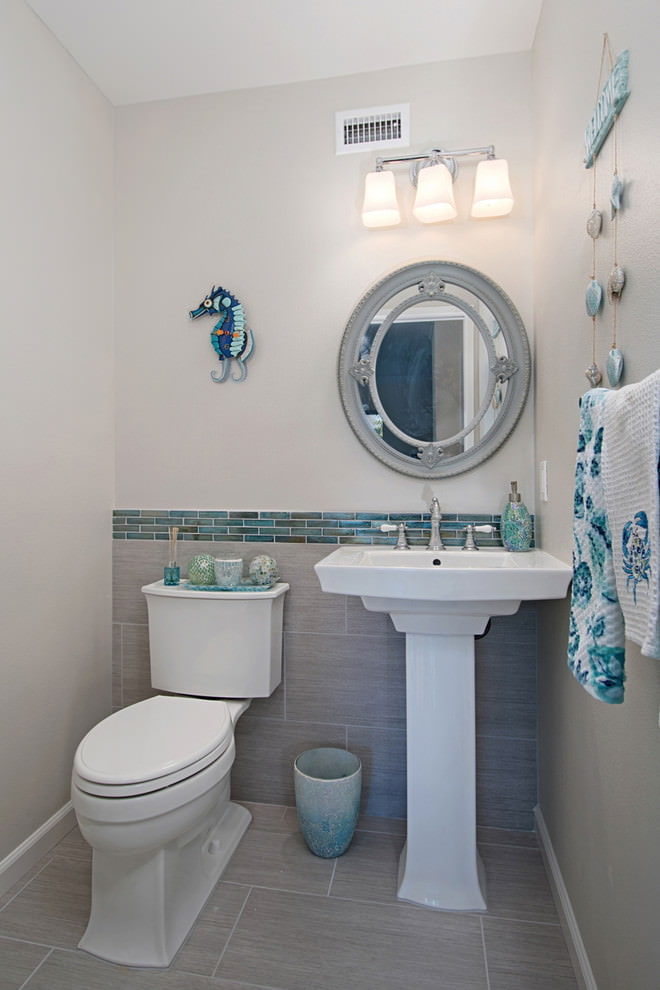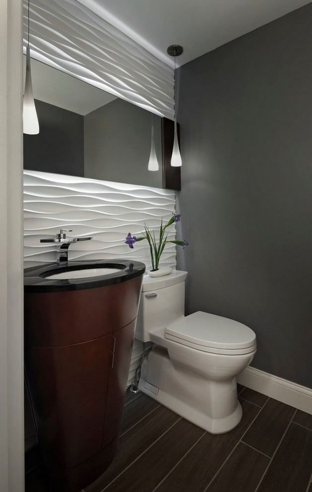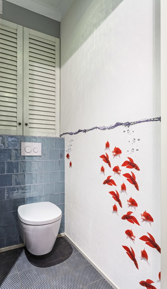 Um belo painel de cerâmica de tamanho pequeno aumentará o brilho do interior da sala do banheiro