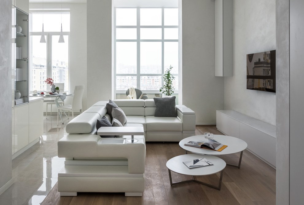 Decorarea livingului într-un stil modern nu diferă într-o mare varietate de culori.