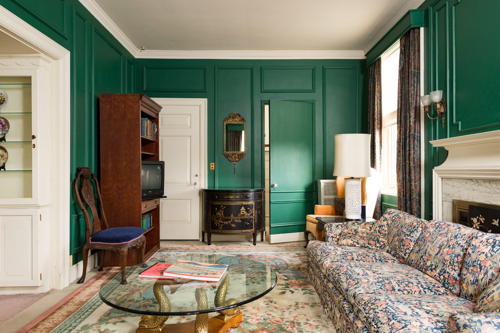 Mobilierul este ales rafinat, în culori pastelate, iar tapițeria este realizată din țesături scumpe, de exemplu, catifea.