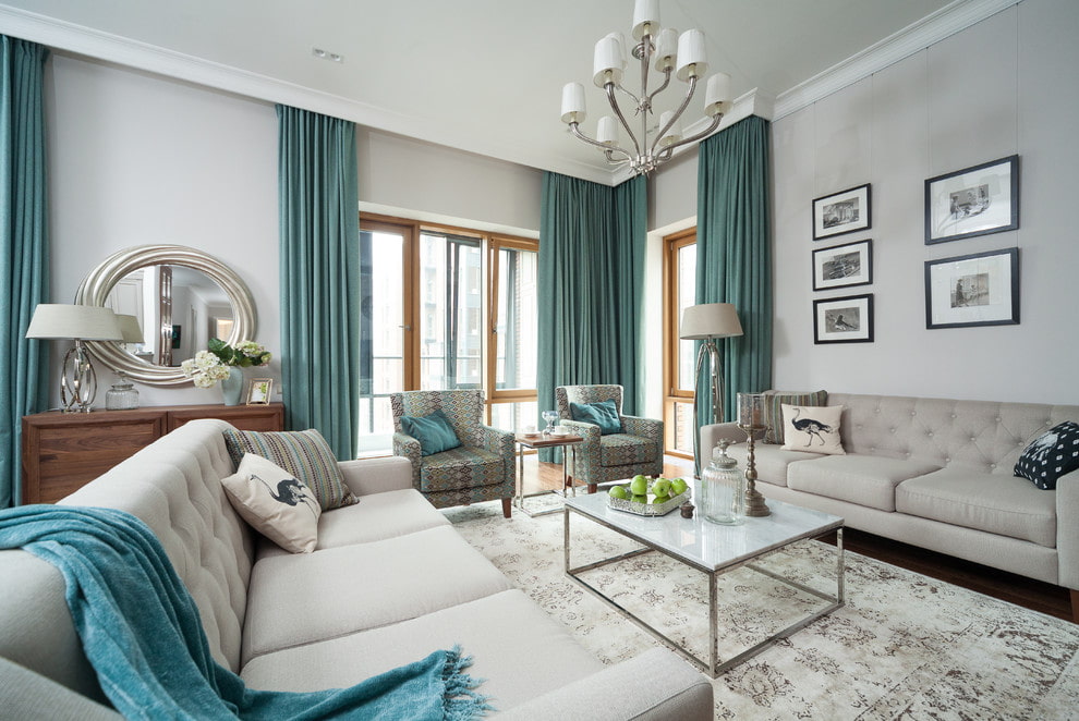 Culorile solide pot fi diluate cu mobilier cu un model, iar invers, perdelele și tapetele cu desene vor lua culori negre, roșii, verzi, albastre și alte culori la ansamblul lor.Alegerea corectă a culorii poate accentua stilul camerei, în timp ce culoarea greșită va strica un interior bun.