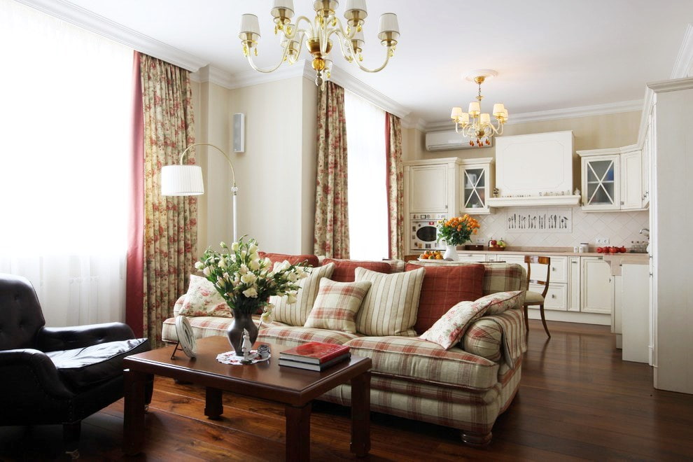 Acest mobilier nu iese în evidență, în principal acestea sunt forme și dimensiuni tradiționale. Umplerea, mecanismele nu diferă de stilul modern, ci aspectul: modelele, tapițeria, elementele decorative sunt complet diferite. Se caracterizează prin culori calme, imprimeuri retro, un spate curbat, adesea există picioare, cotiere și un scaun dreptunghiular.