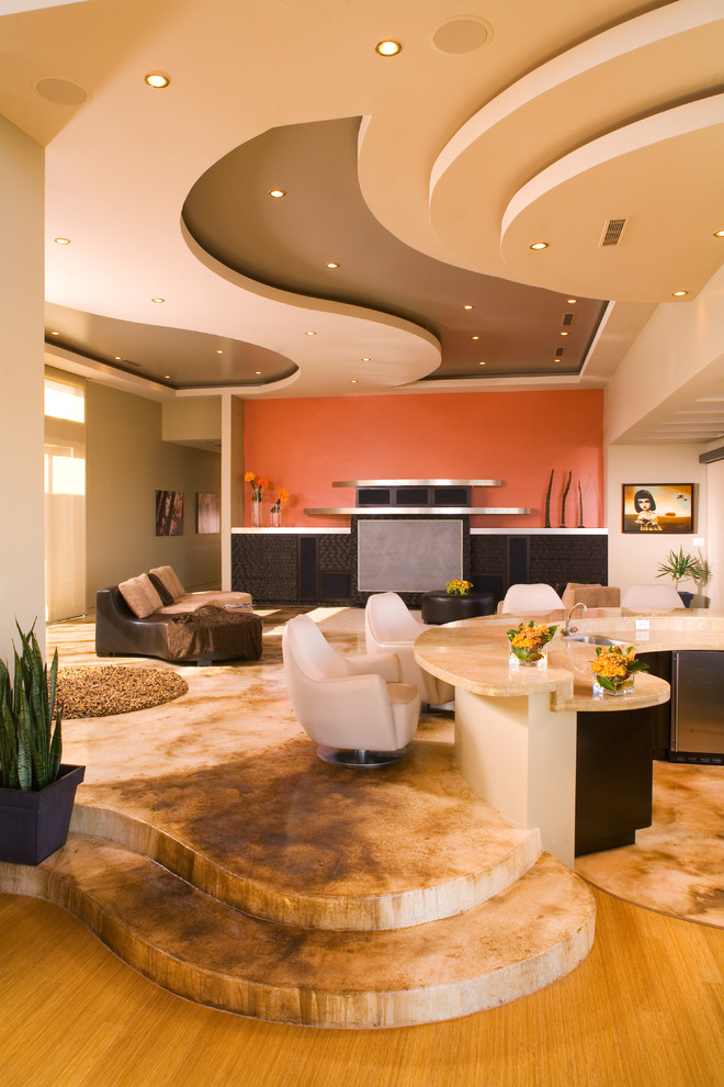 În interioarele clasice, corpurile amplasate de-a lungul liniilor arcuite arată mai bine