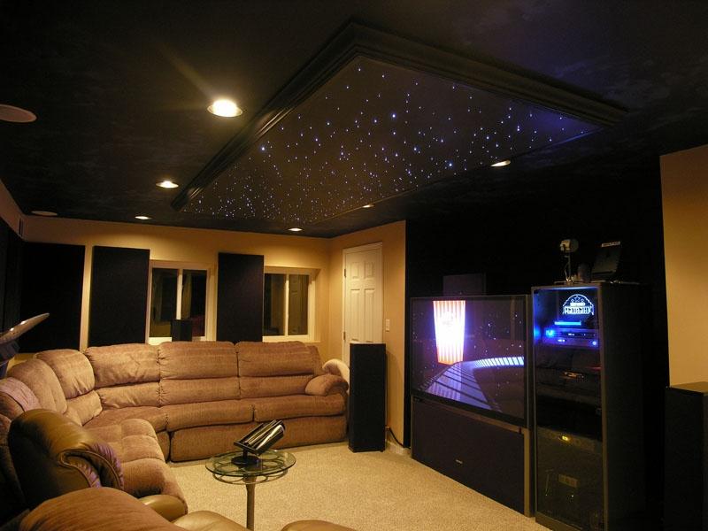 Mulți oameni cred că cerul înstelat poate fi folosit în dormitoare sau camere pentru copii, dar utilizarea sa în sufragerie este relevantă. Până seara, camera se poate schimba, iar oaspeții vor fi plăcut surprinși.