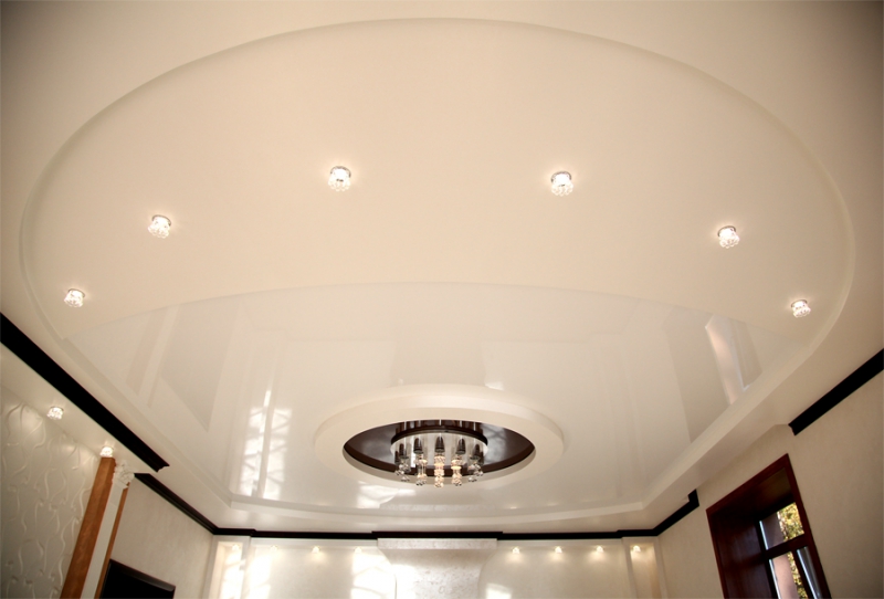 Dacă doriți să oferiți camerei înălțime suplimentară, puteți pune un oval pe altul sau puteți folosi alte forme pentru aceasta. Dacă spoturile vor fi utilizate în paralel, atunci este mai bine să le așezați în interiorul petelor de smochine, și nu dincolo.