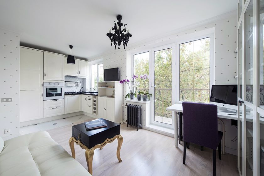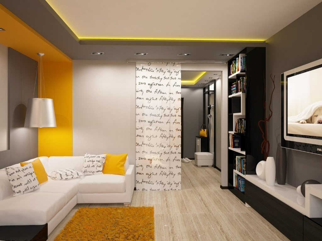 Cea mai bună opțiune ar fi să eliminați pereții despărțitori, deoarece acest lucru va mări suprafața camerei și va forma un studio foarte confortabil și modern.
