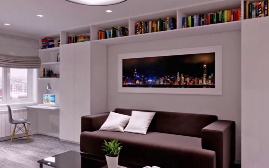 Planul unui apartament cu o cameră de 31 mp, Hrușciov sugerează confort în timp ce economisești spațiu - un televizor montat, de exemplu. Înlocuim frigiderele mari cu modele orizontale. În proiectare, ne străduim pentru simplitate și minimalism, aducând viața tehnologiei moderne.