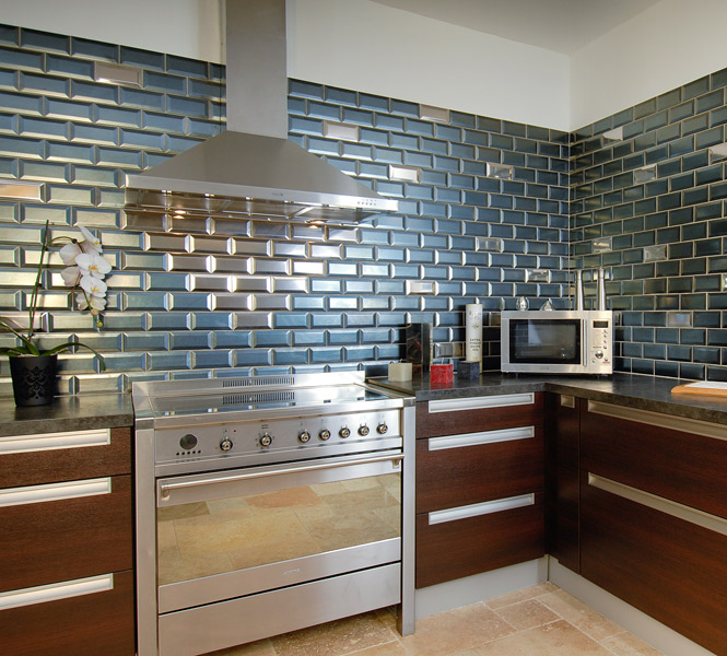 Sub cărămidă, un șorț de bucătărie este adesea finisat. Această soluție este cea mai tradițională și potrivită pentru multe stiluri.