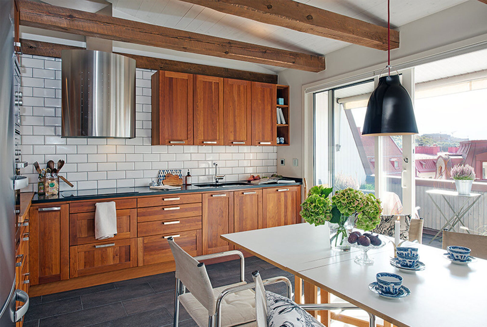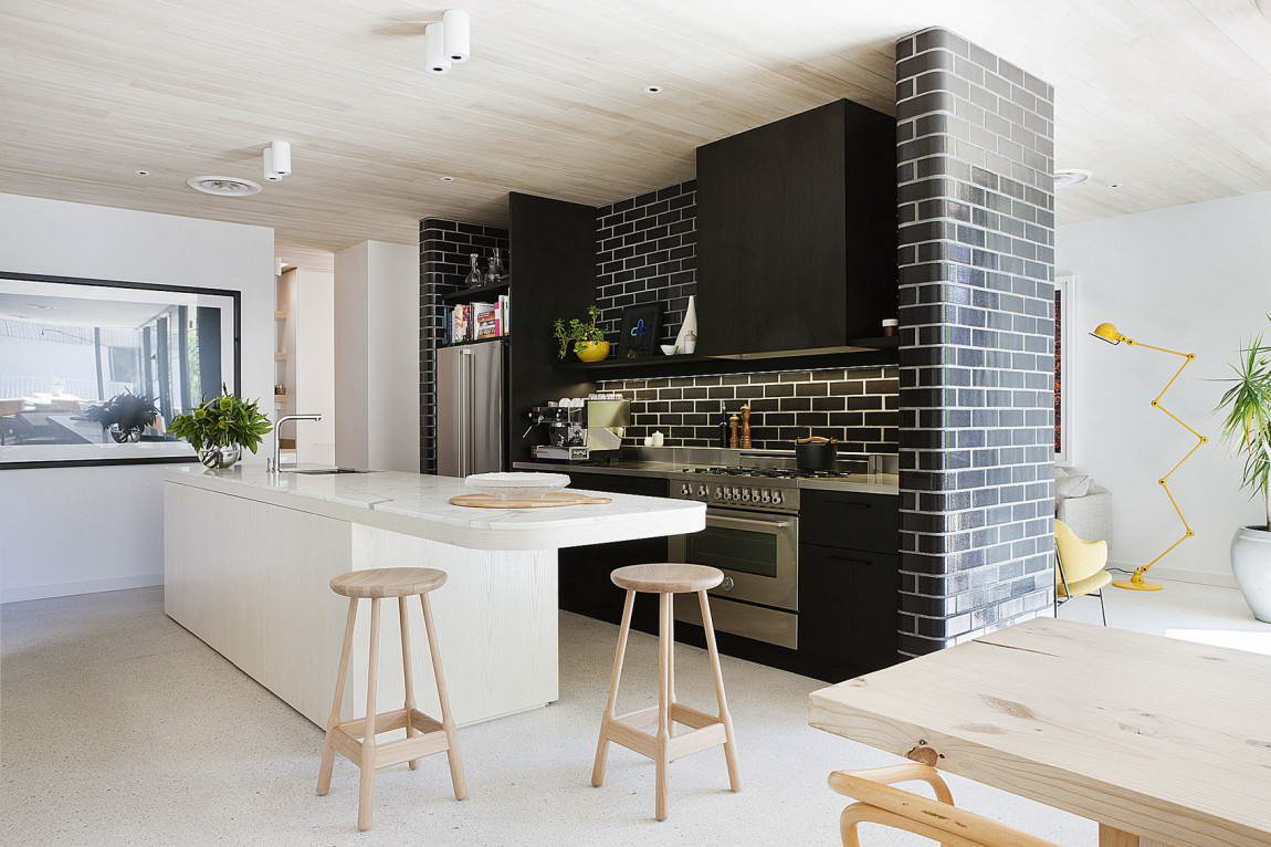 Cărămidăria poate fi folosită pentru zonarea camerei de zi din bucătărie