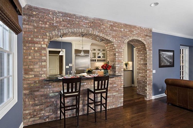 Aranjamentul interiorului bucătăriei trebuie să includă nu numai partea estetică, ci și cea practică. În orice caz, principalele criterii vor rămâne: funcționalitatea și confortul. Formarea unui zid de cărămidă sau a altor elemente este un eveniment îndrăzneț, doar cei mai curajoși oameni care adoră să experimenteze, decid asupra unui astfel de finisaj, dar în zadar! Experimentele ajută la schimbarea familiarului și obișnuitului în ceva nou, neobișnuit. Acest lucru vă va permite să priviți apartamentul și, în special, bucătăria într-un mod diferit.