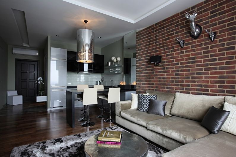 Sfat! Este necesar să folosiți cărămida în interior cu moderație, în caz contrar, camera poate scădea vizual, a deveni înghesuită și mohorâtă.