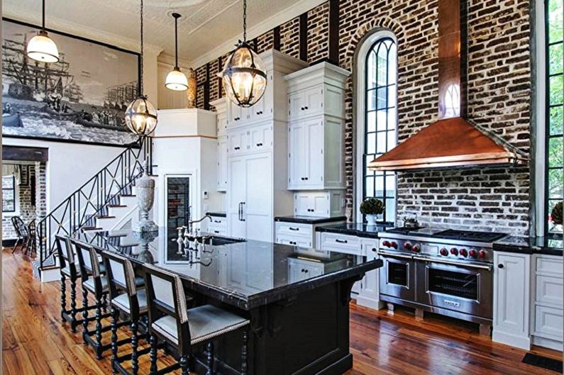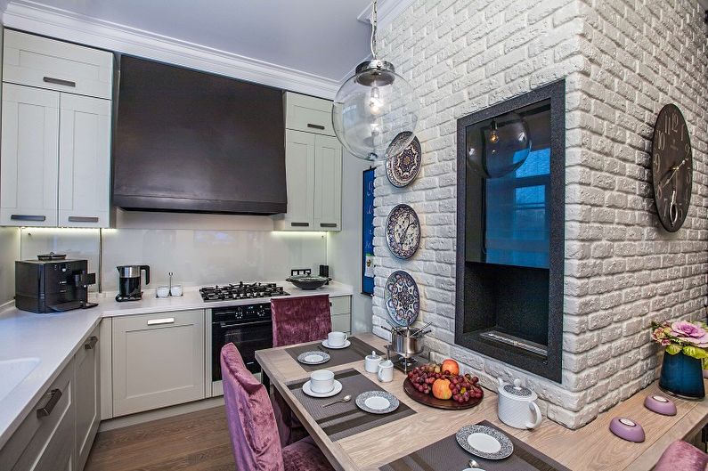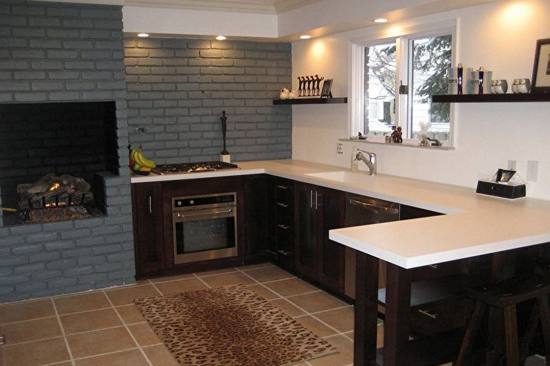 - Cărămidă în interiorul bucătăriei de diferite stiluri