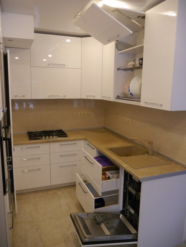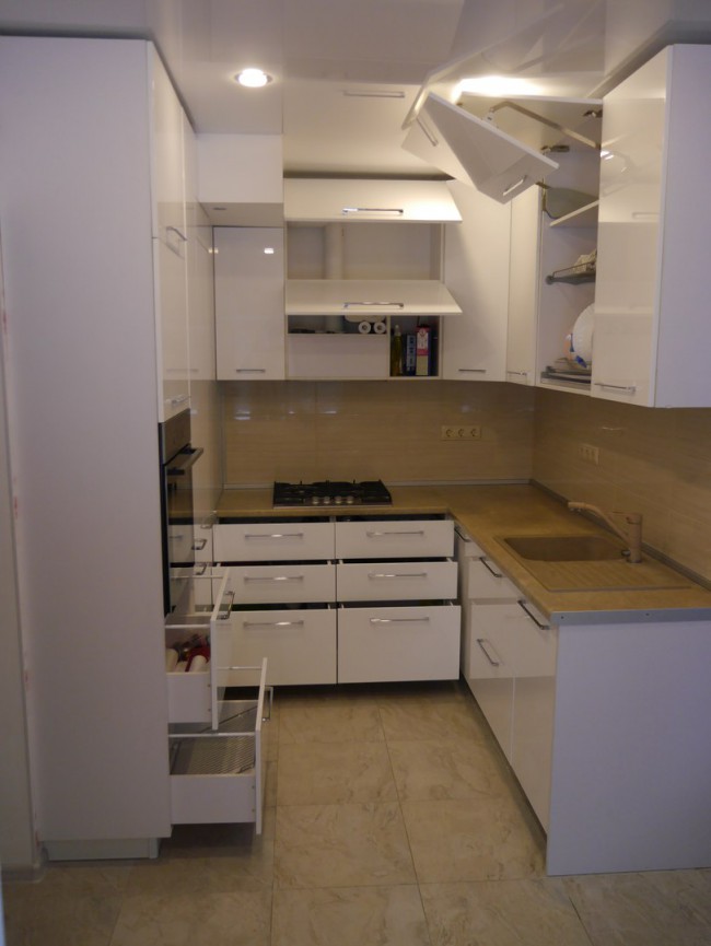 Cea mai bună suită pentru o bucătărie mică - încorporată și colțată, până la tavan