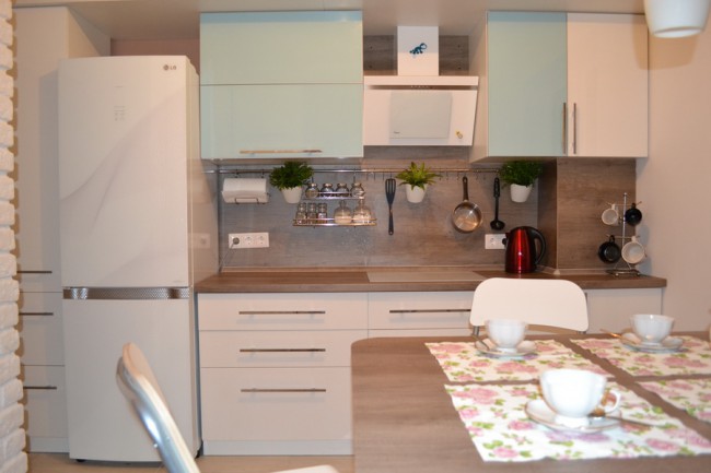 Realizarea interiorului unei bucătării mici, nu exagera cu decorul. Nu ar trebui să existe prea multe bijuterii într-o cameră mică