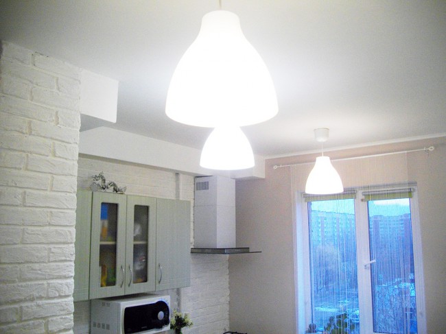 Creați un iluminat uniform în bucătărie, pentru care, pe lângă candelabrul central, veți avea nevoie de lămpi separate în zonele de lucru și de luat masa