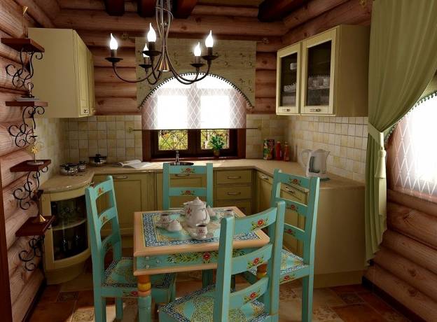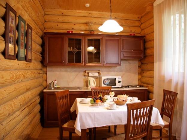 Stiluri populare și solicitate - „sat”, cufundate pe cât posibil în atmosfera rurală. Fiecare locuitor de vară, înainte de a alege opțiunea corespunzătoare, poate examina toate opțiunile pentru o fotografie a bucătăriei la cabana dintr-o casă din lemn.