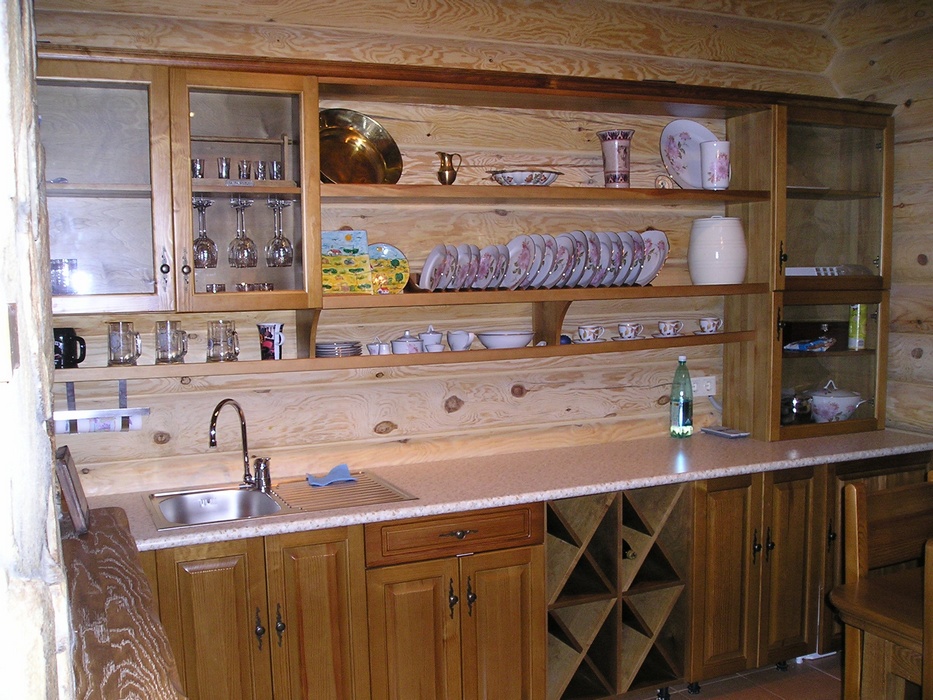 O bucătărie cu pin este o opțiune ecologică și ieftină, foarte populară pentru dar