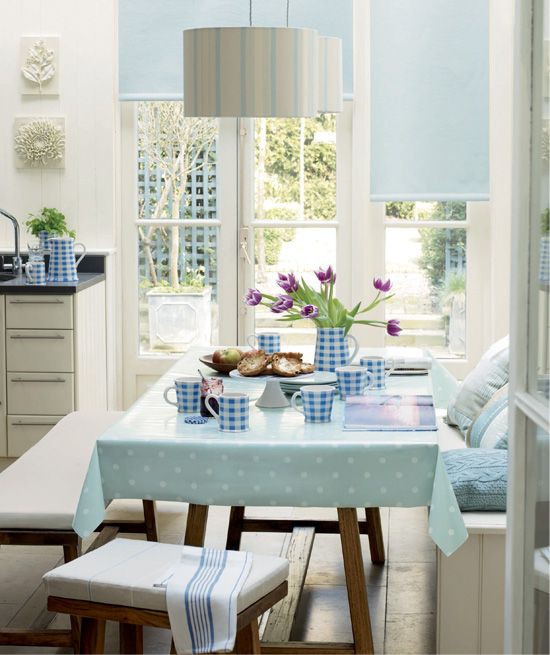 - Design frumos al zonei de luat masa. Pe pereții din apropiere puteți agăța diverse decoruri, o lampă originală și puteți pune pe masă o frumoasă vază cu flori de grădină.