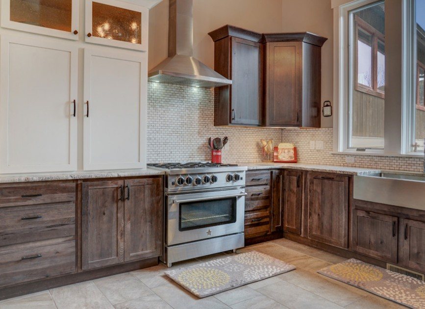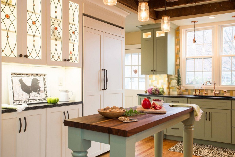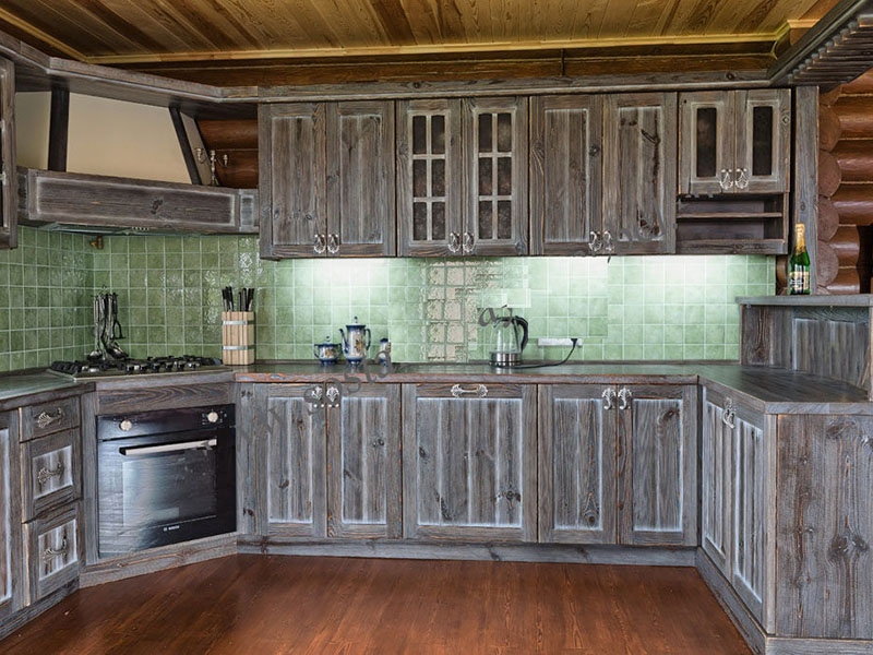 Bucătăriile cu o patină arată foarte nobil și adesea chiar mai confortabil decât unele opțiuni fără el.