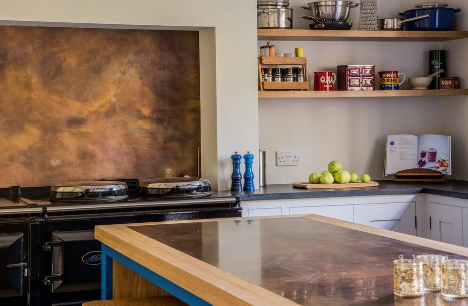 Patina din aur sau argint nu poate adăuga doar o atingere de lux bucătăriei, ci și să completeze cu succes suprafața mată a căștii.