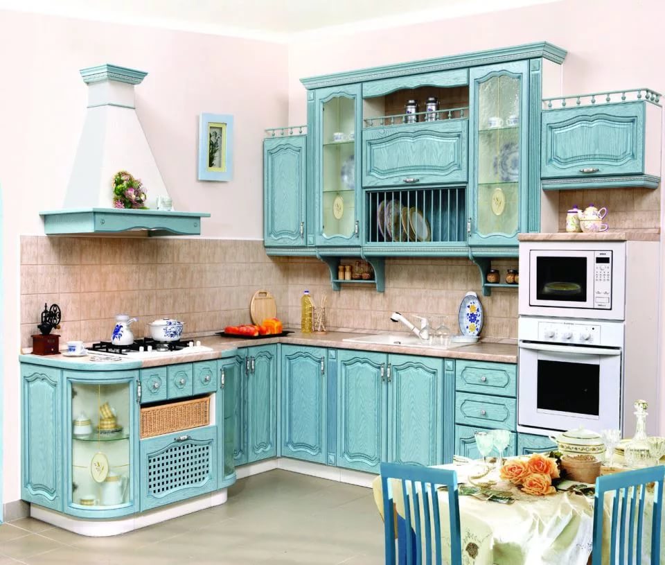 Dacă vă place stilul vintage în mobilier și doriți să aduceți spiritul antichității în bucătărie, nu ezitați să alegeți un set decorat cu patină. Va deveni nu numai funcțional, ci și un element estetic pe deplin. Crede-mă, prietenii tăi nu vor putea aprecia aspectul luxos.