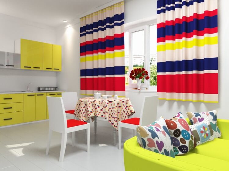 Atunci când alegeți perdele cu dungi, rețineți că imprimarea orizontală va reduce vizual înălțimea plafonului, iar imprimarea verticală va crește