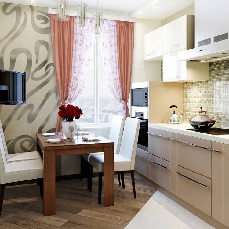 Atenție! Dacă reparațiile apartamentului nu sunt planificate, dar există dorința de a schimba ceva în interiorul bucătăriei, cumpărarea de perdele noi este cea mai bună soluție. Înlocuirea materialelor textile poate transforma designul camerei dincolo de recunoaștere.