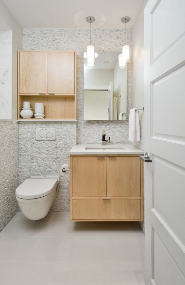 Soluția ideală pentru camerele mici vor fi chiuvetele suspendate, un loc sub care poate fi folosit pentru amenajarea dulapurilor.