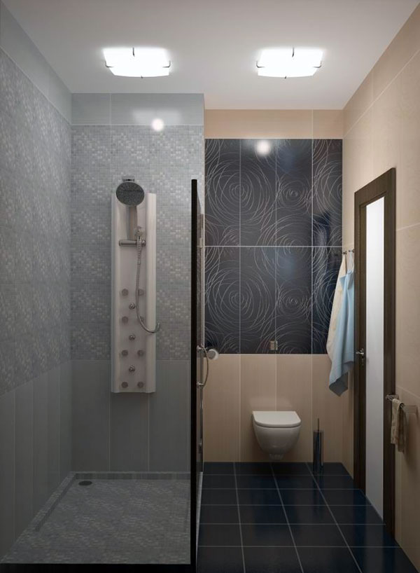 O altă opțiune este separarea folosind perdele (partiții). Sensul de zonare este o separare funcțională, unde totul ar trebui să fie la îndemână cu o anumită acțiune sau ocupație. Într-un caz, o perie și hârtie igienică ar trebui să fie aproape, în celălalt - șampon și un prosop.