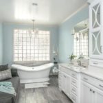 - Nuances de bleu clair. Sous la douche, il est de coutume de se détendre, de se débarrasser de toutes les émotions négatives accumulées pendant la journée de travail. Les psychologues disent que toutes les nuances claires de bleu ont un effet positif sur la psyché. Ils se calment, se reposent.