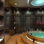 L'éclairage est un aspect important d'un intérieur confortable et attrayant. Vous pouvez organiser la lumière dans la zone de baignade à l'aide d'un beau lustre design, de petits plafonniers. Lustre - une solution extraordinaire pour la salle de bain, décorée dans une direction classique. C'est une option plus familière, mais pas aussi fonctionnelle que les plafonniers.
