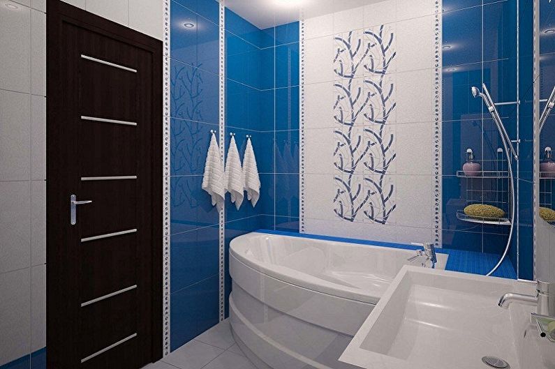 - Une pièce carrée avec une porte dans le coin - douche ou baignoire d'angle sont ici appropriées. De plus, l'évier au-dessus de la machine à laver et les toilettes situées sur le côté auront l'air harmonieux.