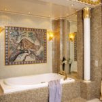 Important! La première option nécessitera des investissements financiers assez importants. La plomberie nécessaire de formes appropriées et de carreaux avec des arabesques n'est pas bon marché. À cela, il convient d'ajouter des éléments d'éclairage et de décoration anciens.