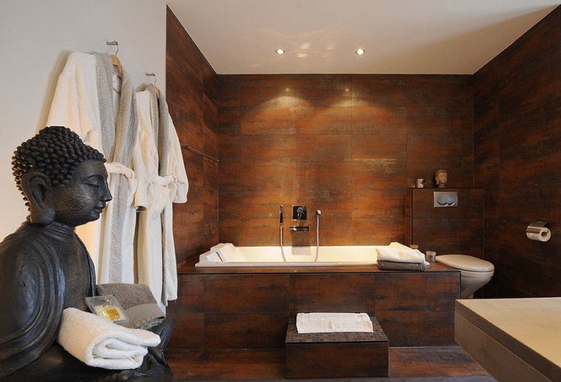 Une salle de bain de style oriental peut sembler luxueuse ou concise selon la direction choisie. En tout cas, l'intérieur sera inhabituel et peut-être même un peu mystérieux.