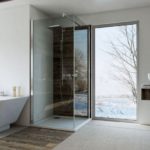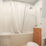 Pour les petits appartements, où chaque place. mètre sur la facture, il est plus pratique de remplacer la baignoire par une douche intégrée compacte. L'option est autorisée lorsque la douche est séparée du reste de la zone avec seulement une cloison vitrée. Une telle technique intérieure élimine l'encombrement de l'espace et ne bloque pas le flux de lumière.