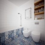 Pour diluer la monotonie du design, choisissez souvent des carreaux de mur ou de sol avec des ornements panachés, nationaux ou géométriques. De plus, le kit peut être composé de différentes tuiles. Leur combinaison aléatoire crée un résultat intéressant, qui rappelle la technique du patchwork. Les motifs géométriques ne sont pas moins populaires, pour lesquels deux couleurs contrastées suffisent.