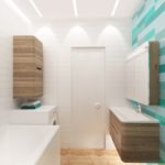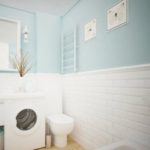 Plomberie compacte, mobilier minimaliste, laconicisme dans le décor, les couleurs claires aident à agrandir visuellement l'espace. L'utilisation de grands miroirs, de surfaces brillantes peut également être attribuée à cela.