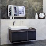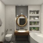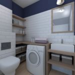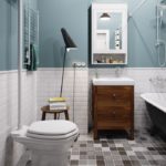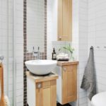Lors du choix d'un meuble, l'accent doit être mis sur sa fonctionnalité, sa compacité et ses formes géométriques. La salle de bain est généralement limitée aux armoires pour ranger les accessoires, souvent encastrées et aux armoires sous l'évier. Sur les murs peuvent être des étagères laconiques, des crochets pour une serviette et un peignoir.