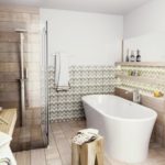 Une caractéristique distinctive du style était les carreaux décoratifs avec des motifs rhomboïdes, en zigzag et ethniques caractéristiques. Il est utilisé en partie pour la décoration des murs et des sols, mais pas pour toute la salle de bain, de sorte qu'il n'a pas l'air hétéroclite. Et les motifs hexagonaux en forme de nids d'abeilles ont aujourd'hui conduit les tendances de la mode.
