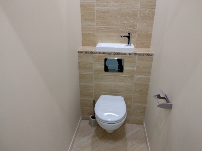 Modestement, mais a tout ce dont vous avez besoin - un porte-papier hygiénique, un lavage à la main et un porte-serviettes