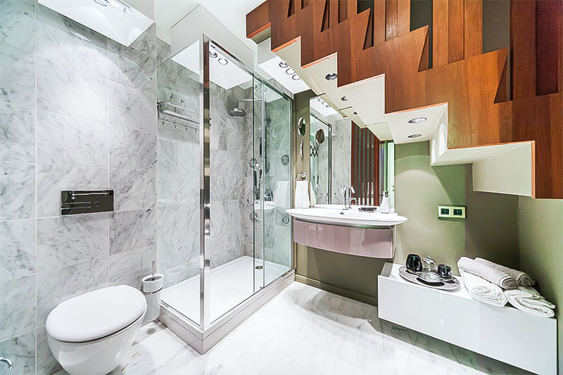 Moins il y aura d'appareils d'hygiène en vue (serviettes, détergents, etc.), plus la pièce aura l'air spacieuse.