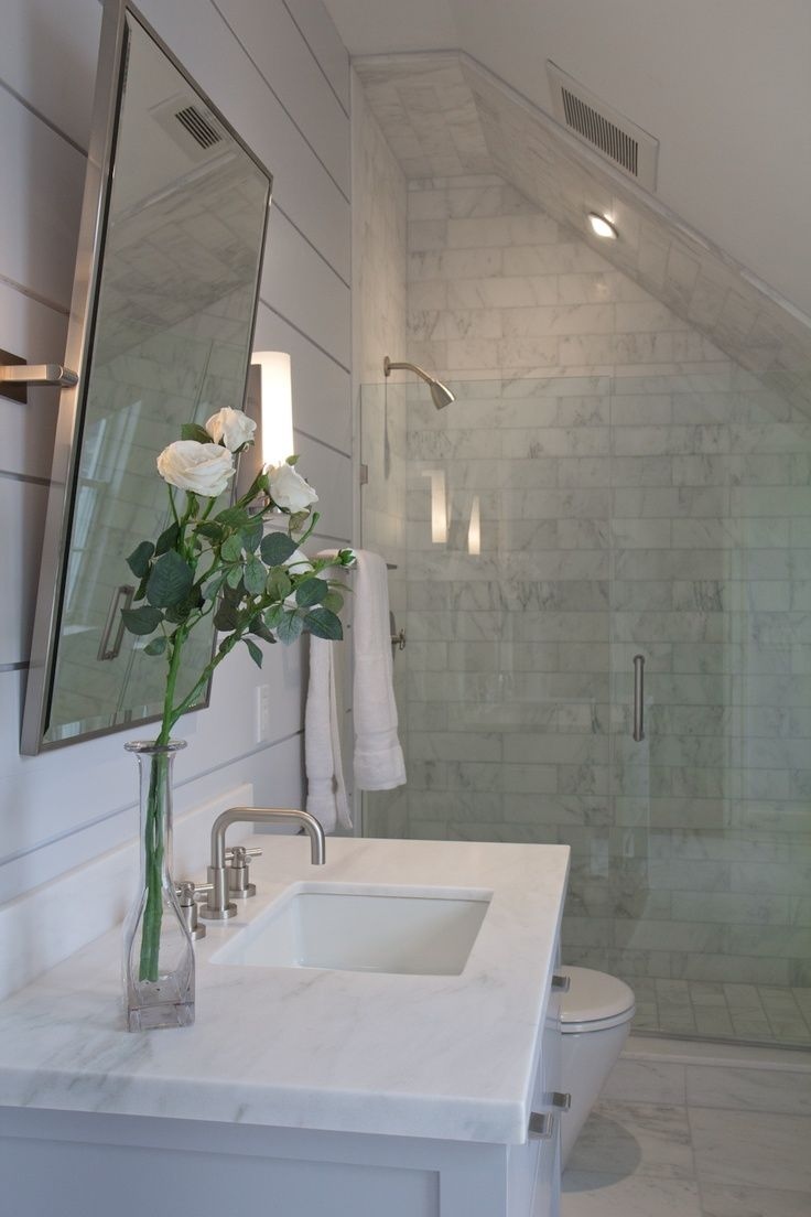 La salle de bain sera visuellement plus grande si vous utilisez des matériaux légers