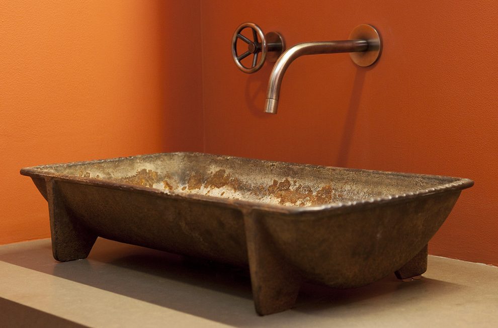 Éviers métalliques inhabituels pour se laver les mains et se laver. Douches utilisées auparavant dans les bains d'usine.De tels accessoires, sélectionnés dans le respect d'un sens du style, transformeront à plusieurs reprises le design intérieur de vos toilettes dans le style Loft.